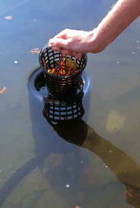Hier kann je nach größe des Teiches ein Netz gespannt werden oder mit der entsprechenden Teichtechnik nachgeholfen werden. Ein Skimmer saugt die Oberfläche des Teich ab, bevor die Blätter zu Boden sinken können und am Boden verfaulen.